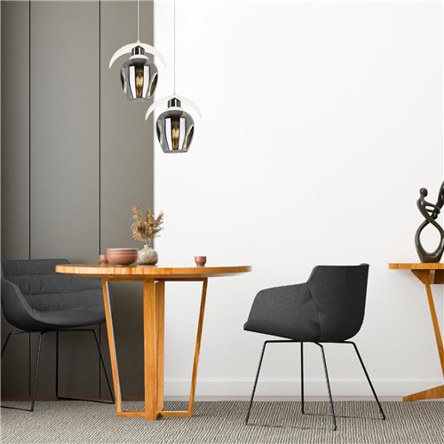 Lampa wisząca Delio 1D wyróżnia się oryginalnym wzornictwem klosza. Jest to idealna propozycja dla osób preferujących styl glamour oraz nowoczesny. To idealny wybór do oświetlenia przestrzeni nad stołem, w kuchni, sypialni, salonie oraz biurze. Lampa zachwyca swą współczesną formą i będzie stanowiła intrygujący element dekoracyjny w każdym wnętrzu w jakim się znajdzie. Solidnie wykonany szklany kwadratowy chromowany klosz skutecznie ogranicza możliwość zniszczenia. Precyzyjne wykonanie oraz wysokiej jakości materiały pozwolą cieszyć się wyglądem i funkcją lampy przez wiele lat.
