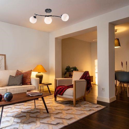 Szklane mleczno-białe klosze zapewnią efektowne rozświetlenie pomieszczenia tworząc przyjemną atmosferę do prac domowych, relaksu czy też spotkań towarzyskich