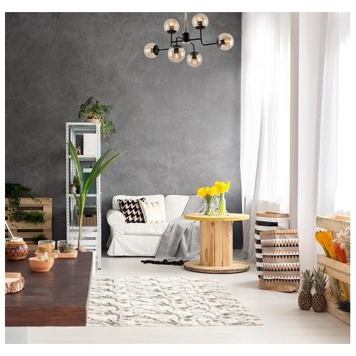 Laila 6 to nowatorski żyrandol, który zachwyca swoim pięknym kształtem. To model, który ozdobi i rozświetli każde wnętrze. Jego znakiem charakterystycznym są szklane miodowo- bursztynowe klosze. Zostały zamontowane one na czarnej oprawie o bardzo ciekawym kształcie. Emitowane światło z sześciu punktów świetlnych wypełni jasnością całe pomieszczenie. To idealny dodatek do salonu, jadalni, sypialni, biura, przedpokoju oraz garderoby. Laila będzie idealnym dodatkiem do nowoczesnych i eleganckich pomieszczeń. Solidna konstrukcja, precyzyjne wykonanie oraz materiały najwyższej jakości pozwolą cieszyć się wyglądem i funkcjonalnością lampy przez wiele lat.