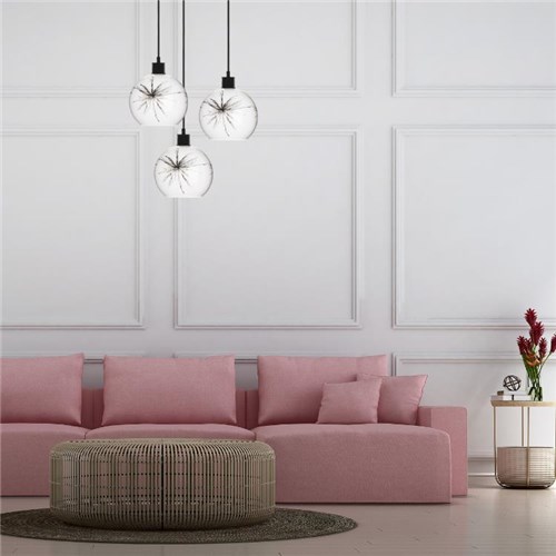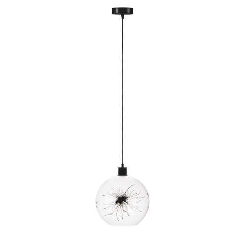 Lampa wisząca Salin to uniwersalny model. Ta subtelna lampa to połączenie prostoty szkła i poetyckiego detalu graficznego. Gładki, mlecznobiały klosz został ozdobiony ręcznie lub nadrukiem o wysokiej trwałości przedstawiającym eteryczny dmuchawiec – symbol ulotności, spokoju i marzeń. Motyw wkomponowany jest w szkło w sposób dyskretny, ale wyrazisty.