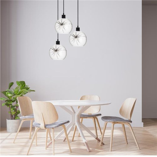 Lampa wisząca Salin to uniwersalny model. Ta subtelna lampa to połączenie prostoty szkła i poetyckiego detalu graficznego. Gładki, mlecznobiały klosz został ozdobiony ręcznie lub nadrukiem o wysokiej trwałości przedstawiającym eteryczny dmuchawiec – symbol ulotności, spokoju i marzeń. Motyw wkomponowany jest w szkło w sposób dyskretny, ale wyrazisty.