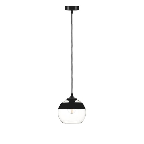 Lampa wisząca Sunnia to uniwersalny model. Nowoczesna lampa o transparentnym, szklanym kloszu, który zachwyca lekkością i czystością formy. Jej wyróżnikiem jest dekoracyjny czarny pasek – poziomy lub pionowy – który nadaje całości wyrazisty, graficzny charakter i subtelnie kontrastuje z przejrzystością szkła.