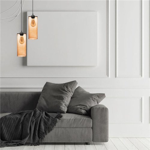 Lampa wisząca Velissa to uniwersalny model. Lampa o wydłużonym, cylindrycznym kloszu – szklana tuba, której minimalistyczna forma została wzbogacona subtelnym efektem nakrapiania. Każdy egzemplarz jest unikalny – lekko nieregularny wzór nadaje lampie artystyczny, rękodzielniczy charakter i sprawia, że światło rozprasza się w sposób niejednolity, pełen głębi i niuansów.