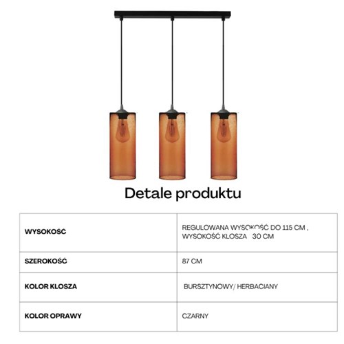 Lampa wisząca Ozisa 3 na listwie z trzema kloszami