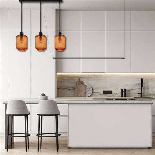 Lampa wisząca Inverno to uniwersalny model. Lampa przyciąga wzrok nietypowym, zmiękczonym geometrycznie kształtem – przypomina lekko zdeformowany kwadrat lub szklany słój, jakby uchwycony w ruchu. Niesymetryczne ścianki i delikatne zaokrąglenia nadają jej unikalny, rzemieślniczy charakter – łącząc surowość formy z miękkością światła.