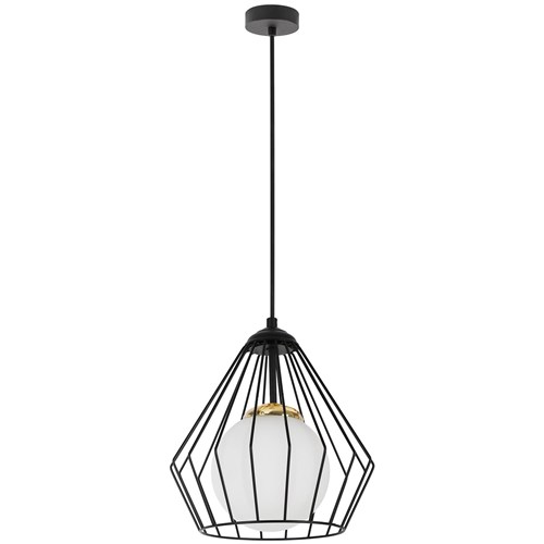 Rio to lampa wisząca, która zachwyca swoim ciekawym i oryginalnym wyglądem. Będzie to idealny dodatek dekoracyjny do różnorodnych wnętrz w nowoczesnym, loftowym a także skandynawskim stylu. Jej nieregularny kształt drucianego klosza przykuwa uwagę i nadaje ciekawy charakter całej aranżacji. Jej środek wypełnia biała kula, a detale lampy są w kolorze złotym. To doskonała propozycja do oświetlenia przestrzeni salonu, jadalni, sypialni, garderoby oraz biura. Ze względu na zastosowaną kolorystykę czarnego oraz bieli lampę wkomponuje się z łatwością w każdy wystrój wnętrza. Solidna konstrukcja, precyzyjne wykonanie oraz materiały najwyższej jakości pozwolą cieszyć się widokiem i funkcją lampy przez wiele lat. Uzupełnij swój wybór o inne modele lamp z kolekcji Rio i ciesz się spójną aranżacją oświetleniową w swoim wnętrzu.