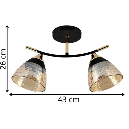 Żyrandol Toskana 2 to nowoczesna, elegancka i stylowa lampa, która będzie stanowiła we wnęrzu intrygujący element dekoracyjny. To doskonała propozycja oświetlenia centralnego w salonie, jadalni, sypialni a także w kuchni. Światło wydobywające się z dwóch szklanych lekko dymionych kloszy subtelnie wypełni jasnością każde pomieszczenie. Świetne połączenie kolorystyczne czarnego ze złotem sprawia, że żyrandol prezentuje się wyjątkowo. Produkt zachwyca również precyzyjnym wykonaniem oraz trwałością.